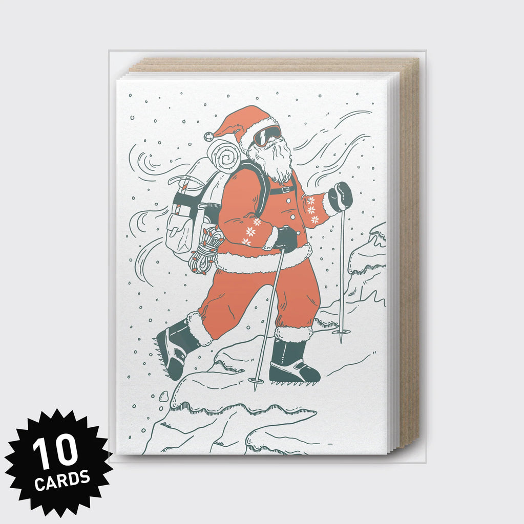 Santa Hiker Holiday Greeting Card - Box Set of 10