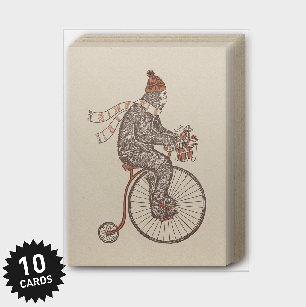 Sasquatch Bike Holiday Greeting Card - Box Set of 10