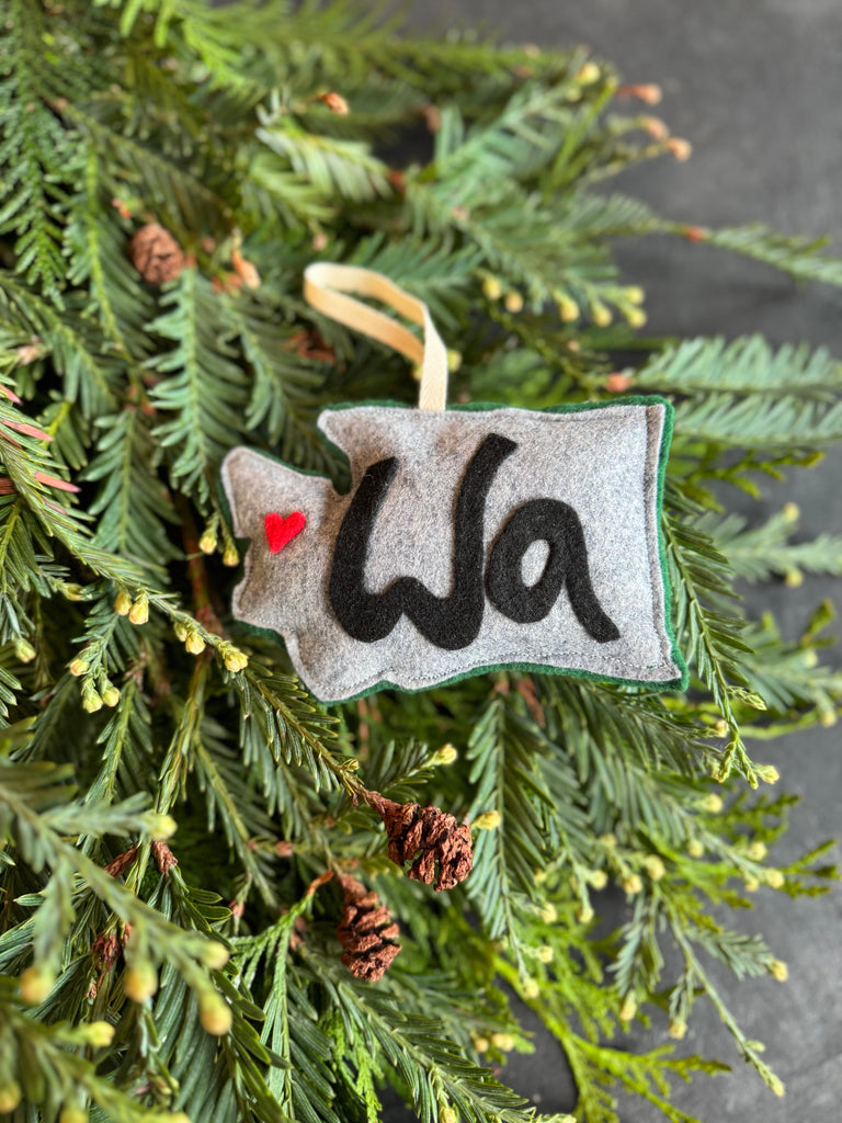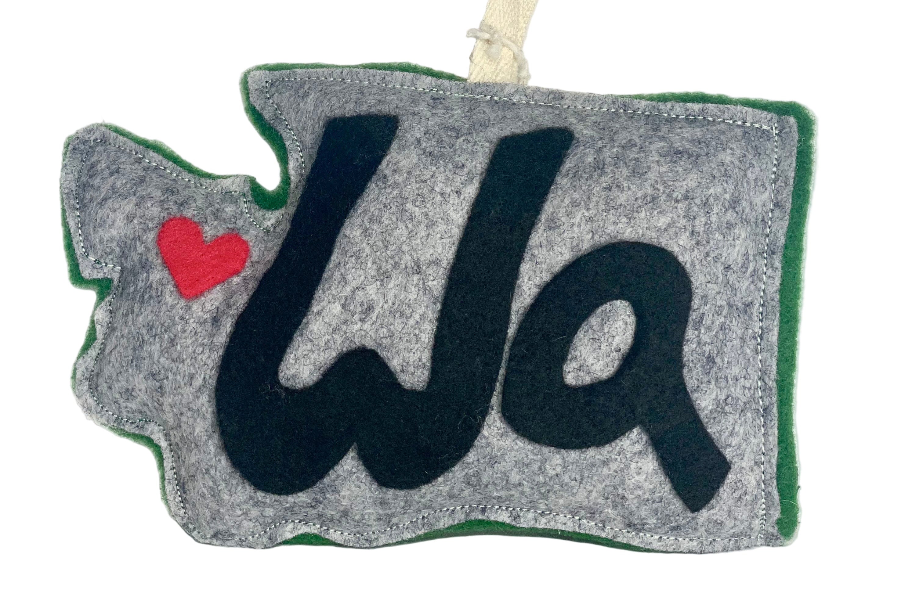 Show your state pride with the “WA” themed ornament. Featuring bold, hand-stitched letters, this piece is a classic symbol of Washington’s identity, perfect for locals and admirers alike.