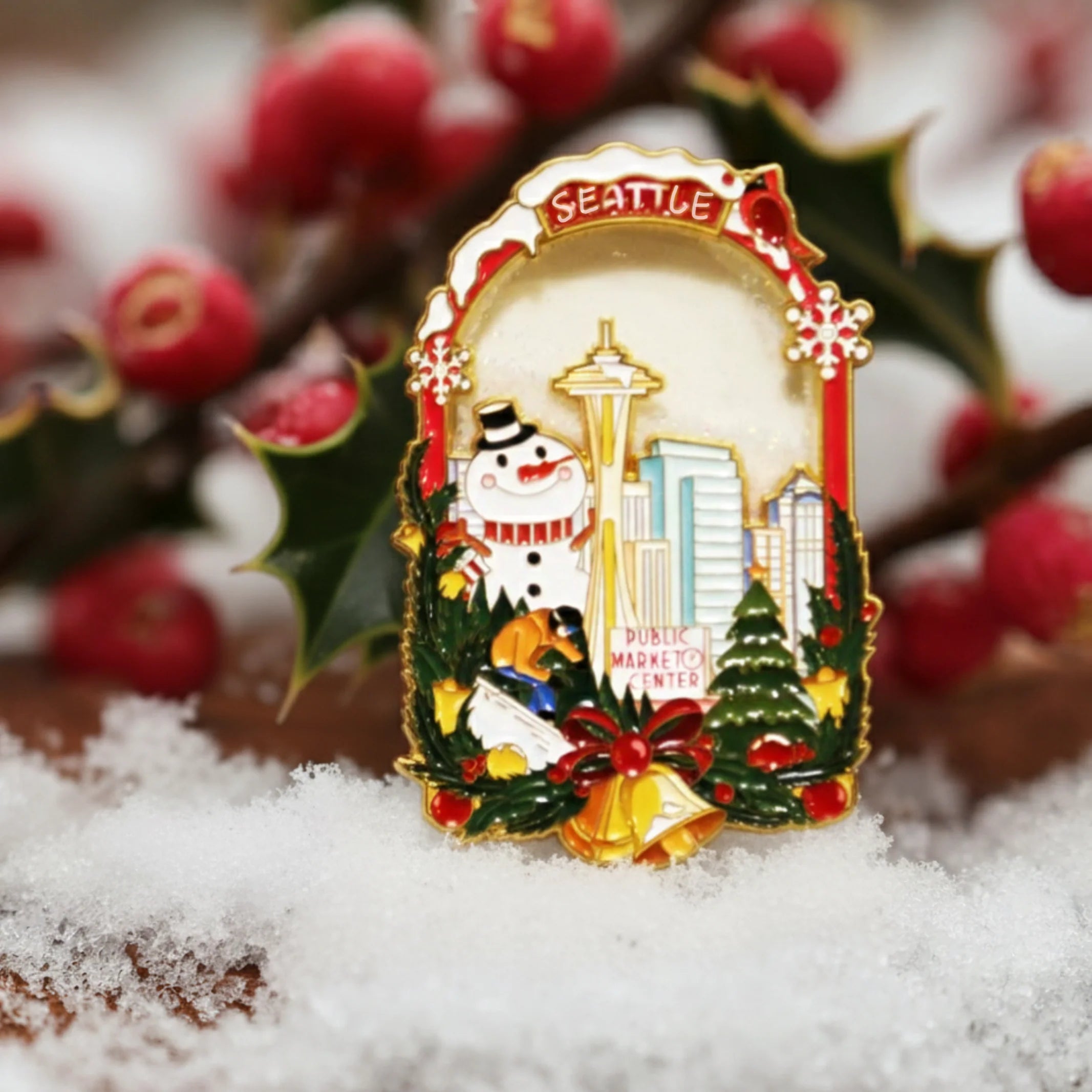 Designed here and crafted with care, this magnet is a joyful tribute to Seattle’s holiday season.