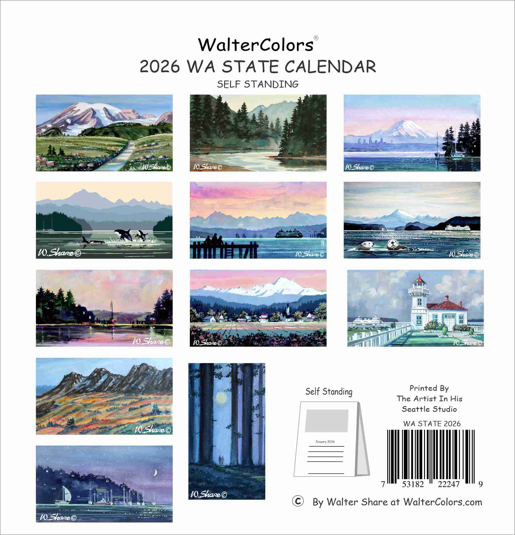 Washington State Desktop Calendars 2026 by Walter Share