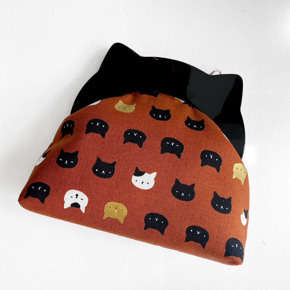MINIK Cat Clutch - Canvas & Resin - Rust. Comes with detachable vegan leather strap
