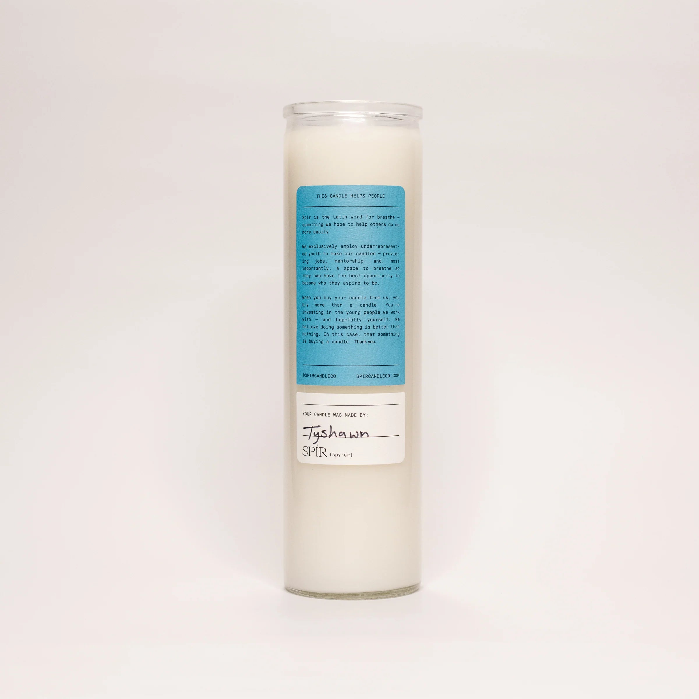 All candles are handmade and signed by the young individual who made them.